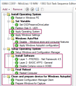 There however can also be a big change in the deployment when you are using MDT or SCCM to deploy your new Modern Workplace image to existing computers which aren’t yet known with Autopilot. You will face this change in behavior when you’re using an OSD which deploys the operating system within Windows PE with the autopilot json file, restarts in Windows 10, installs applications and other tasks which you want to execute and ends with a Sysprep action.