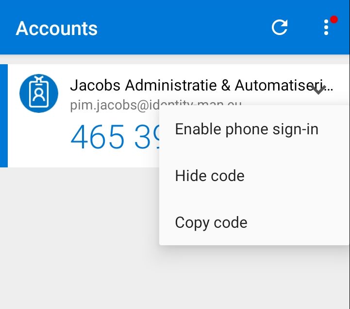 Once done you will see that an icon has appeared within the Authenticator app next to your account. This means your account is successfully enabled for password-less phone sign-in.
