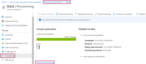 To know what user object(s) is/are currently provisioned we can hit the button ‘View provisioning logs’.