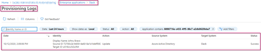 Within the ‘Provisioning Logs’ screen we can see that the user (which was in scope for provision) was updated within Slack. This as the Johny Bravo user existed already on the Slack platform as it was created via the SAML integration described in the previous blog post. The reason why we only see the Johny Bravo user in here, is that this user is the only user which has an active assignment on the Slack application within the Azure AD.