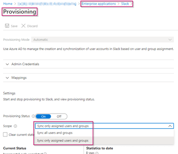 If you want to sync users without an active assignment for that application, we need to change the ‘provisioning settings’ within the ‘Slack Enterprise Application’ in Azure AD.