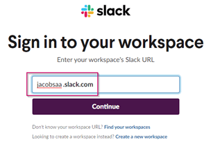 A pop-up window will open, asking you to provide your ‘Slack URL’, this is the tenant name of Slack. Therefore, I’ve filled in my tenant name ‘jacobsaa.slack.com’.