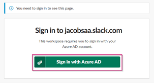 Now ‘sign in to Slack’ with your Slack ‘admin account’ by hitting Sign in with Azure AD.