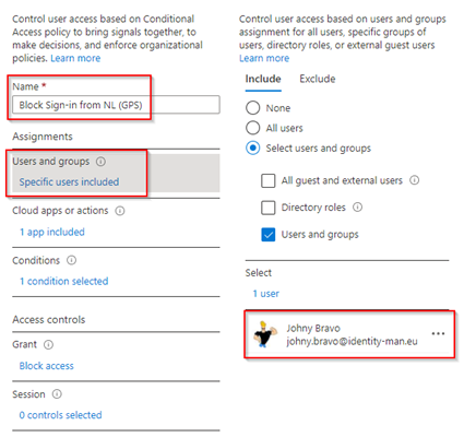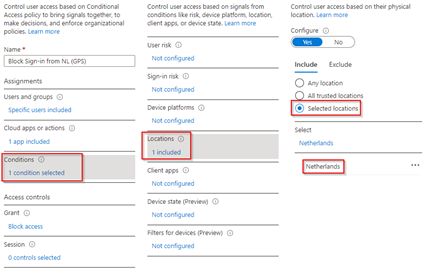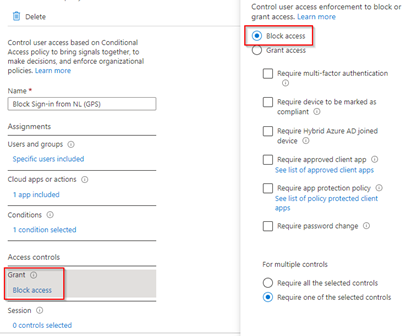 As this rule is called ‘Block Sign-in from NL (GPS)’, make sure the ‘Grant’ settings are set to ‘Block access’.