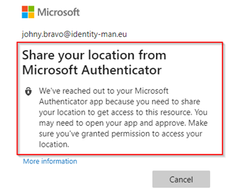 In normal second factor behavior, hitting ‘Approve’ would be enough and the sign-in would be completed, however as we targeted this user with conditional access policy for which we need his GPS location, the Authenticator App is requesting the user to share this data. The user therefore must click ‘Continue’. If the user doesn’t click on ‘Continue’ the sign-in simply isn’t completed and the user is therefore blocked from accessing resources.