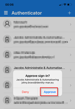 Within the authenticator app the user therefore must ‘Approve’ his sign-in.