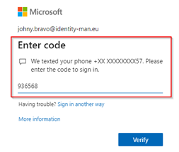 Now let’s have a look at what happens for a user which isn’t using the authenticator app yet, for all applications except Slack the behavior won’t change, and in my example the user is still presented with a text challenge when accessing Exchange Online as shown in the example below.