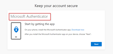 When the user hits ‘Next’ the Authenticator app experience is launched and once completed this will be set to the new default method for the user as second factor.