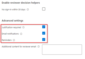 The next step is to configure the advanced settings as required, I’ve enabled that guest users require to fill in a justification, they will be informed by email and if they didn’t respond to the access review yet at the midpoint of the access review, they will receive a reminder.