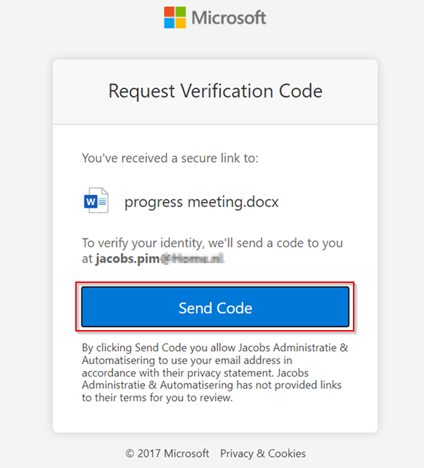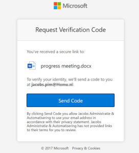 The email address is automatically filled and refers to the email address which was used to share the document with. What we also can see here is that we are looking at the Azure Active Directory login page and not the SharePoint Online login page, which tells us as well that the B2B integration has been enabled. To continue again please hit ‘Next’. An email will now be sent over to the same email address which was used to share the document with (which is the one-time passcode feature).