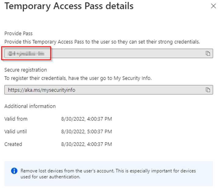 Important to know is that expired Temporary Access Passes aren’t shown within the Security Info to the end user, only active Temporary Access Passes are shown to a user within the Security Info and if required users are also able to delete them from their account.
