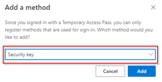 - Users in scope for the Self-Service Password Reset (SSPR) registration policy will be required directly after the sign-in with a Temporary Access Pass to register the authentication methods, this doesn’t support the registration of FIDO2 Security Keys and Phone Sign-in today. If the SSPR policy is set to not require registration this doesn’t apply.