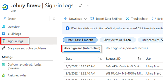 Now we have walked through some use-case examples, let’s have a look at the sign-in logs which are available. When looking at a user which is using their Temporary Access Pass to sign-in, we can see in the Sign-in Logs of the user and grab one of their sign-ins.