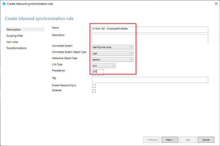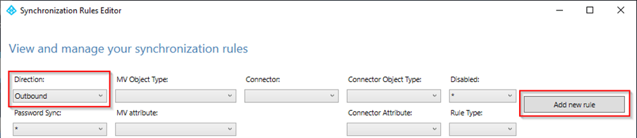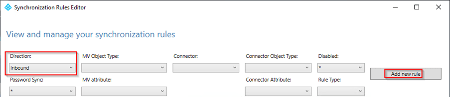 Therefore, open the ‘Synchronization Rules Editor’ and ensure that the direction at the top is set to ‘Inbound’ and hit ‘Add new rule’.