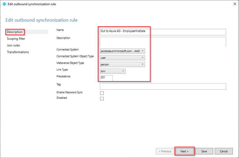 - Connected System: yourtenant.onmicrosoft.com – AAD