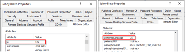 For users for which this value is configured by administrators (e.g. Johny Bravo) the preferredLanguage set on the user account, in this case ‘US’, will be used. Explicitly