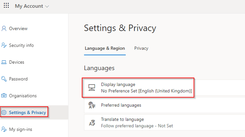 For synced accounts this needs to be changed in the on-premises Active Directory, if you have populated the country value correctly on user objects this can easily be done by copying the value which is in the attribute name ‘c’ (country) to the ‘preferredLanguage’ attribute.