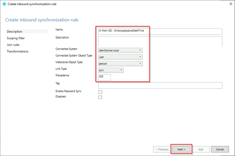 Once ready hit ‘Add’, now let’s make sure the EmployeeLeaveDateTime value can be synchronized.