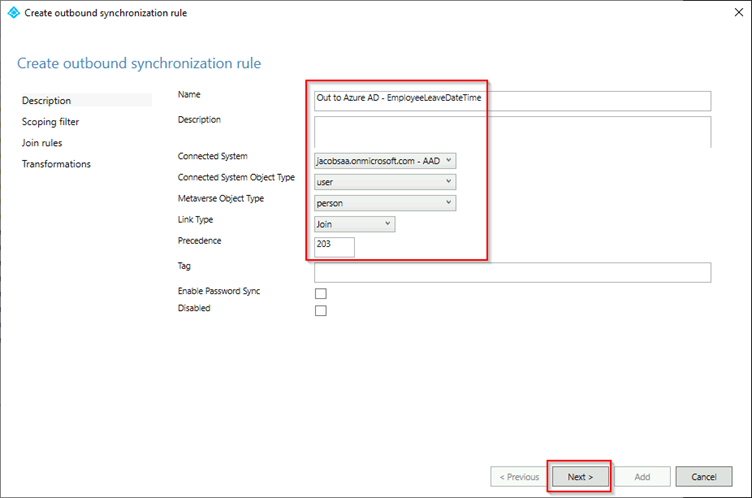 - Name: Out to Azure AD – EmployeeLeaveDateTime