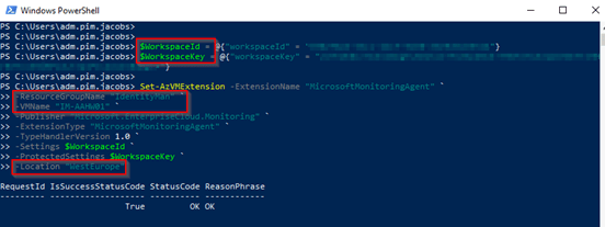 Set-AzVMExtension -ExtensionName "MicrosoftMonitoringAgent" `
