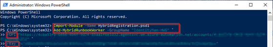 Add-HybridRunbookWorker -GroupName "<hybrid worker group name>" `