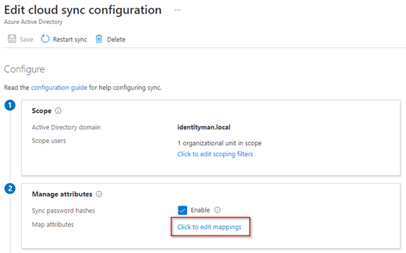 If you’re using Cloud Sync to synchronize your identities and want to configure the EmployeeHireDate & EmployeeLeaveDateTime, go to Azure Active Directory –> Azure AD Connect –> Manage Azure AD Cloud Sync and select the configuration for your Active Directory.