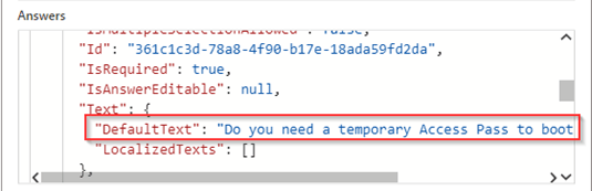 Furthermore, I’ve requested the user (during the request) to fill in more questions why it actually needs the Temporary Access Pass, this helps during the approval process to determine if this is a valid request, and we can use these answers and values within the Logic App later on.