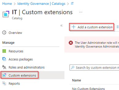 Now the ‘Custom Extension’ is ready let’s configure it to be used within an Access Package.