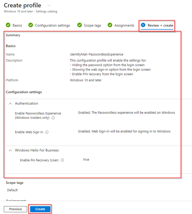 Eventually, if required, assign ‘Scope tags’ and make sure that in the ‘Assignments’ tab the configuration profile is targetted to devices. Why devices? This, as during the out-of-the-box experience you want to have the web sign-in feature enabled as soon as possible. So, when the device has an unexpected reboot or the user is presented with a lock screen (due to policies), the user can use web sign-in instead of the password option. In my example I’ve targetted the policy to ‘All devices’, but I can imagine you rather want to use something more specific. In my experience the best experience to achieve this is by using device filters (you don’t get this experience with dynamic groups as those can have an update delay and with that a delay in policy retrieval as well).