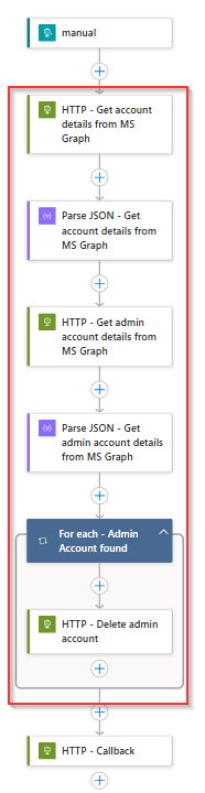 For the ‘LA-AdminAccount-PostOffboarding’ this should result in the below steps, which as you can see delete the admin account based on the following actions: