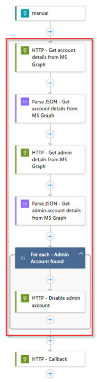 For the ‘LA-AdminAccount-Offboarding’ this should result in the below steps, which as you can see disable the admin account based on the following actions: