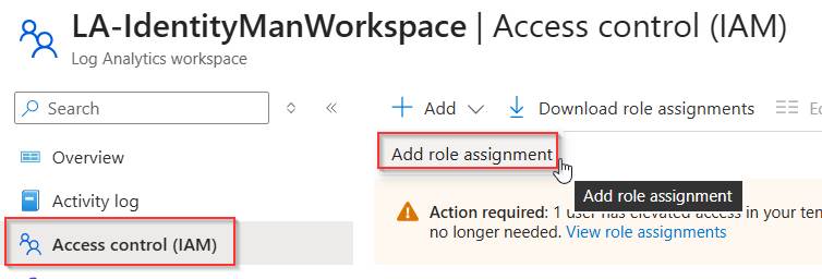 For that go to the log analytics workspace which is being used for this alert rule and go to ‘Access Control’, hit ‘+ Add’ and select ‘Add role assignment’.